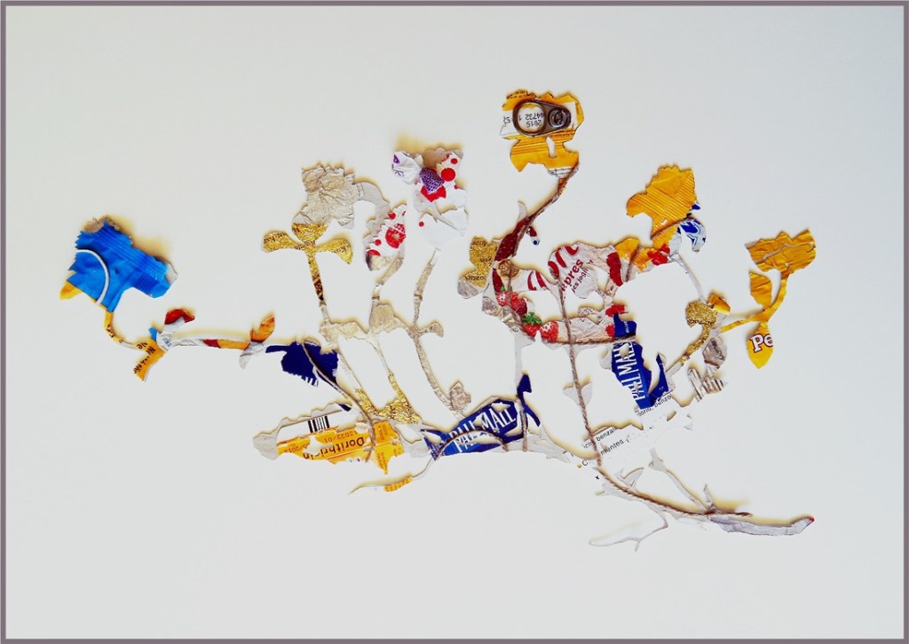 Aus dem auf den Wegen gesammelten Abfall habe ich Abdrücke der typischen Pflanzen gemacht.